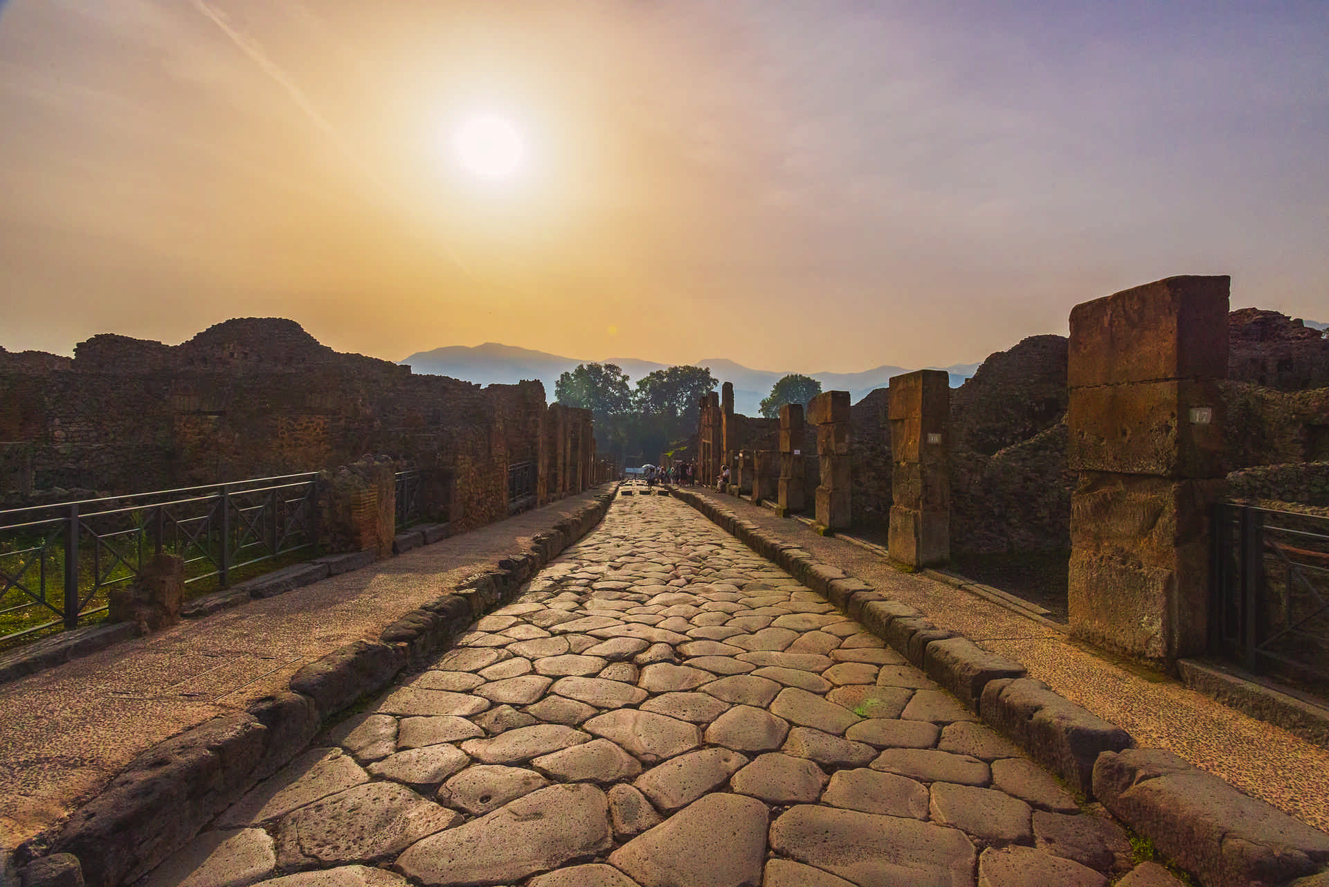 Pompei è un'antica città romana che fu sepolta dall'eruzione del Vesuvio nel 79 d.C. Gli scavi archeologici hanno riportato alla luce edifici, affreschi e manufatti che offrono uno spaccato dettagliato della vita quotidiana dell'epoca.